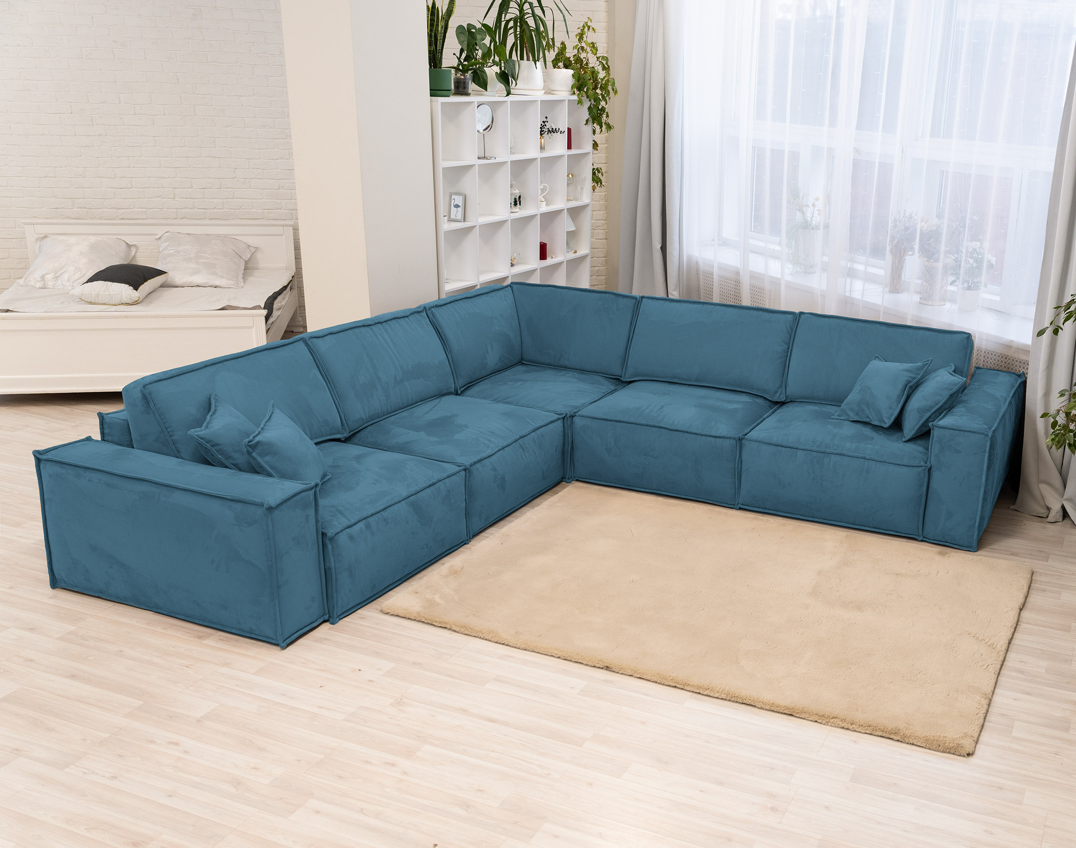 Угловая секция Сиена Лазурный велюр Triniti с грязеотталкивающей технологией