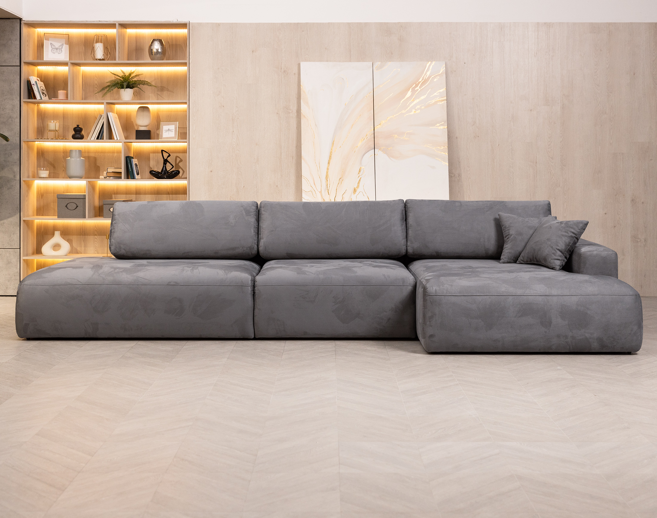 Премиальную коллекцию наших диванов пополнил роскошный угловой диван «Монополи» в стиле Лофт. Монополи — это живописнейший город на берегу Адриатического моря. Бирюзовое море, песчаные пляжи и белоснежные каменные домики — уютный рай с атмосферой расслабления и наслаждения жизнью. Эту атмосферу воплотил в себе диван «Монополи». Нежный на ощупь нубук высочайшего качества, блок независимых пружин и стильный минималистичный дизайн делают диван «Монополи» настоящим украшением современного интерьера.