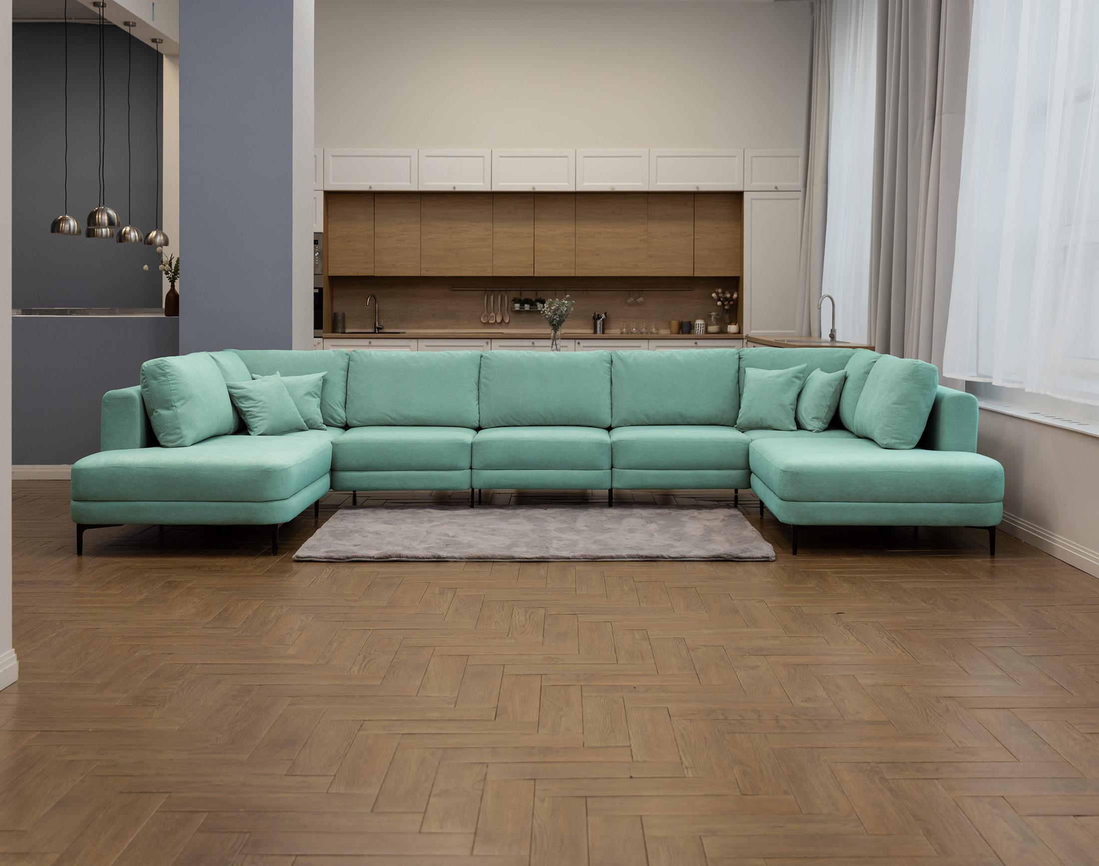 Новый тренд в мягкой мебели. Благодаря высоким ножкам диван выглядит лаконично и элегантно, придавая интерьеру лёгкость и уют. Кроме того, такая конструкция упрощает уборку под диваном.