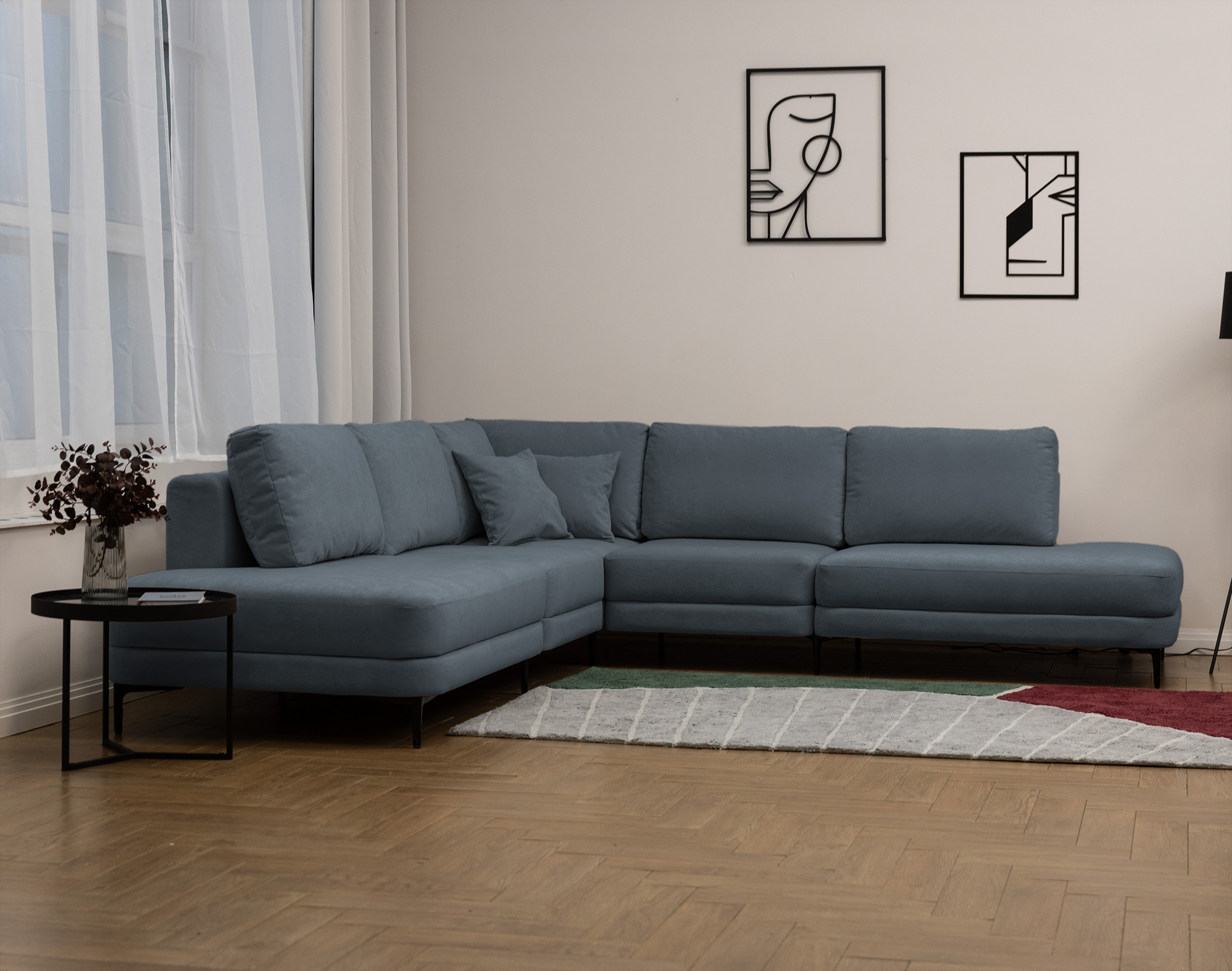 Новый тренд в мягкой мебели. Благодаря высоким ножкам диван выглядит лаконично и элегантно, придавая интерьеру лёгкость и уют. Кроме того, такая конструкция упрощает уборку под диваном.