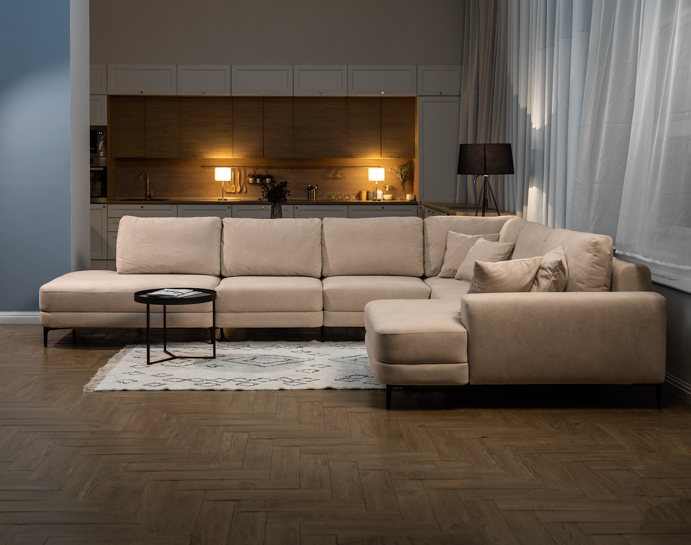 Новый тренд в мягкой мебели. Благодаря высоким ножкам диван выглядит лаконично и элегантно, придавая интерьеру лёгкость и уют. Кроме того, такая конструкция упрощает уборку под диваном.