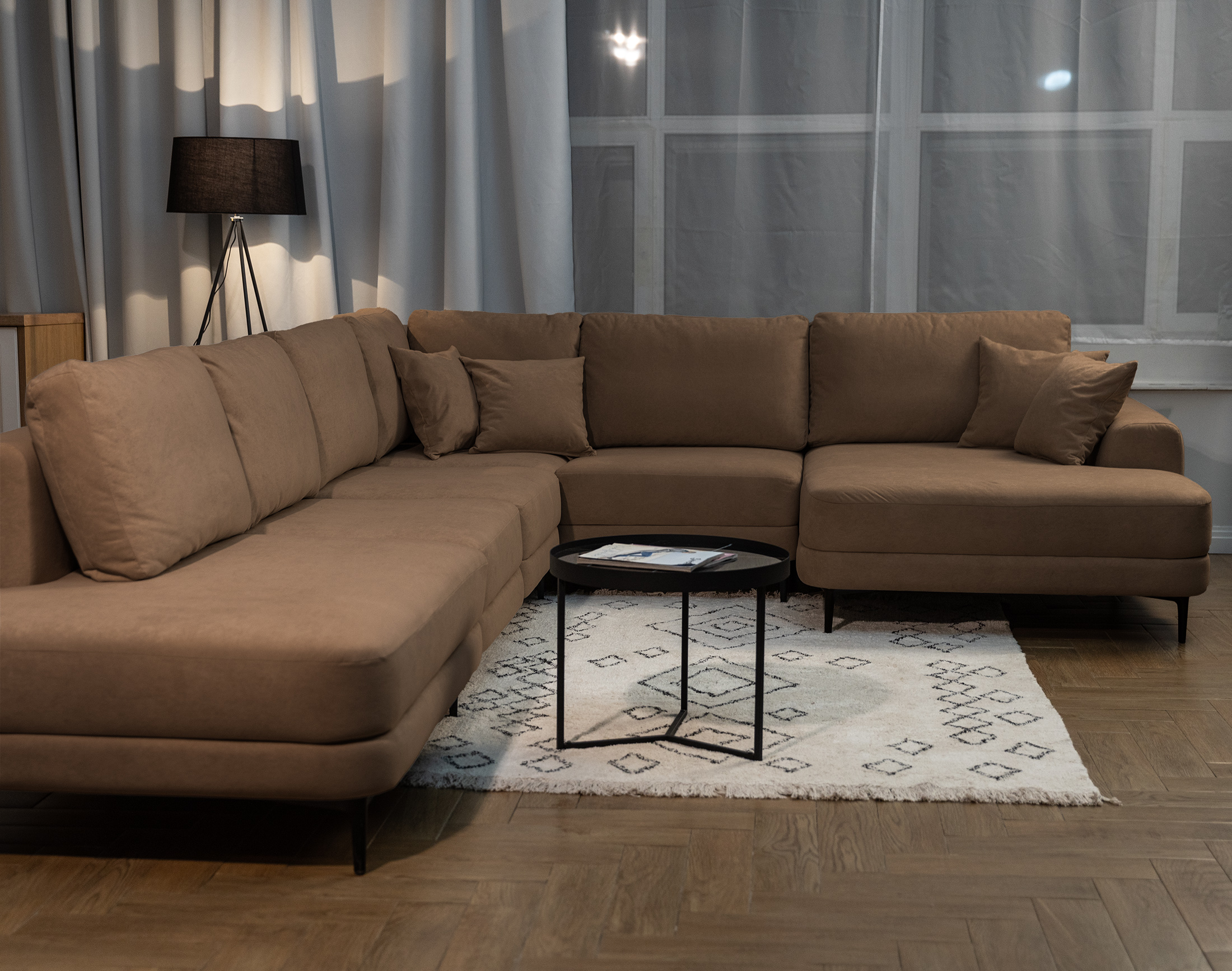 Новый тренд в мягкой мебели. Благодаря высоким ножкам диван выглядит лаконично и элегантно, придавая интерьеру лёгкость и уют. Кроме того, такая конструкция упрощает уборку под диваном.
