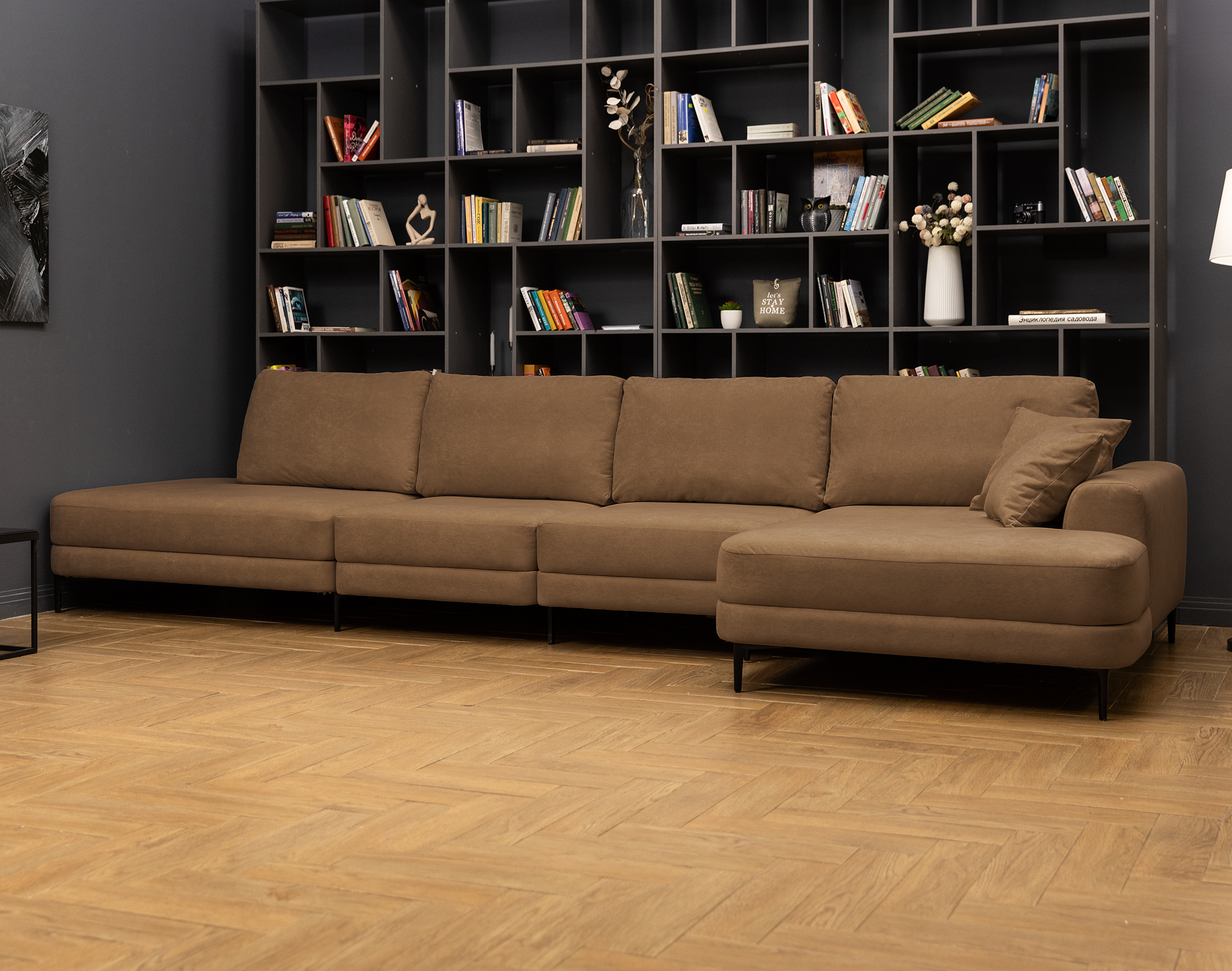 Новый тренд в мягкой мебели. Благодаря высоким ножкам диван выглядит лаконично и элегантно, придавая интерьеру лёгкость и уют. Кроме того, такая конструкция упрощает уборку под диваном.