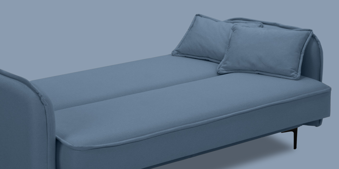 Высокие ножки дивана делают его форму легкой, максимально открывая пространство. Кроме того, такая конструкция упрощает уборку, делая доступным напольное покрытие.
