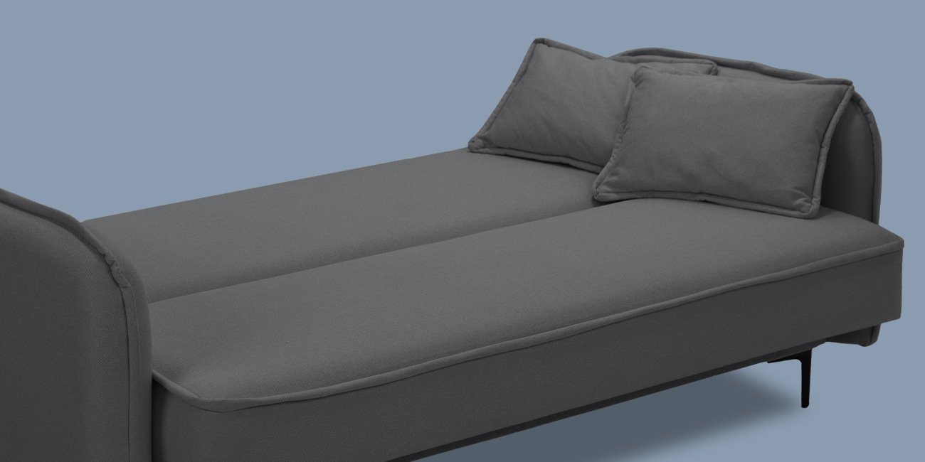 Высокие ножки дивана делают его форму легкой, максимально открывая пространство. Кроме того, такая конструкция упрощает уборку, делая доступным напольное покрытие.