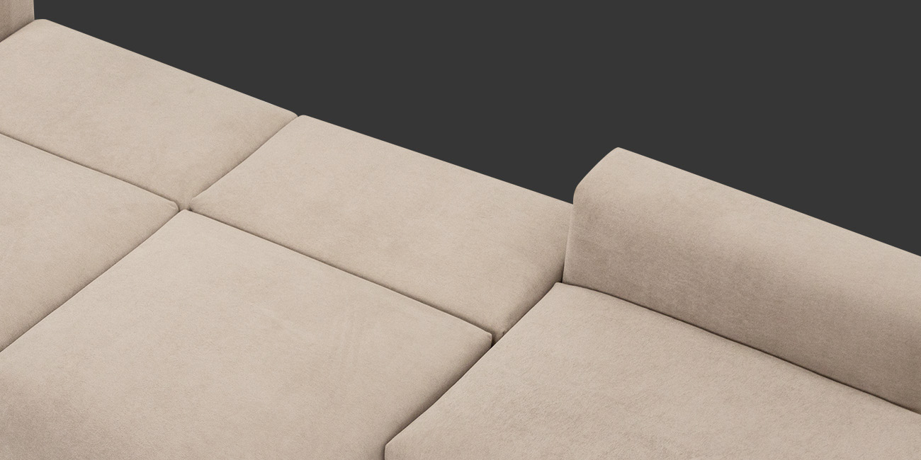 Модули соединяются легко и надёжно — диван можно перестраивать под настроение и формат пространства.