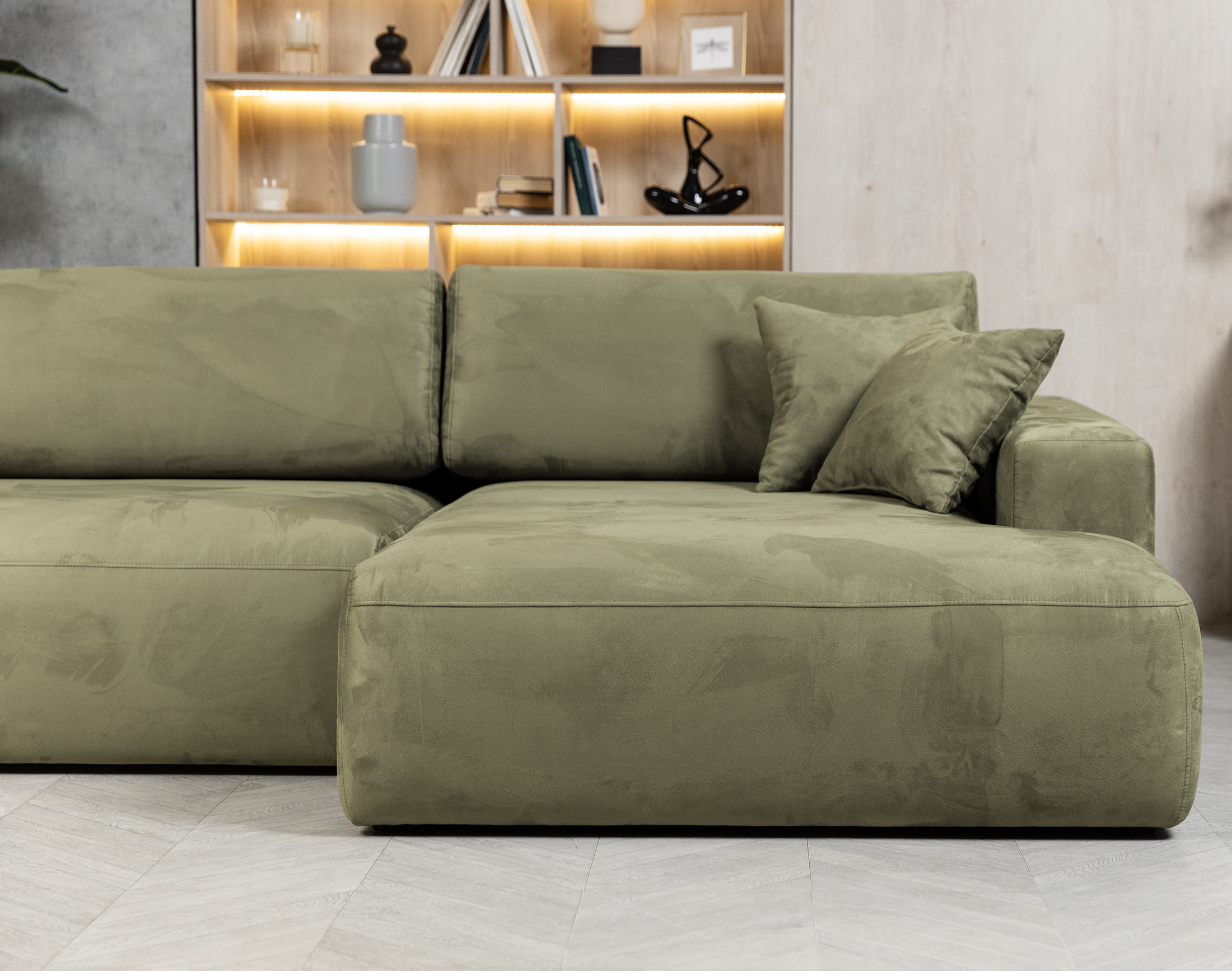 Угловой диван Новара Искусственный нубук Balance цвета хаки еврокнижка за 144 990 ₽. В наличии!