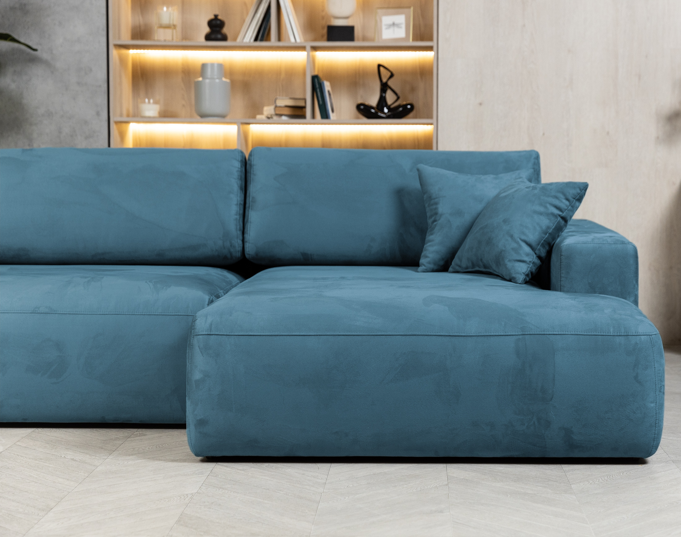 Угловой диван Новара Лазурный искусственный нубук Balance еврокнижка за 144 990 ₽. В наличии!