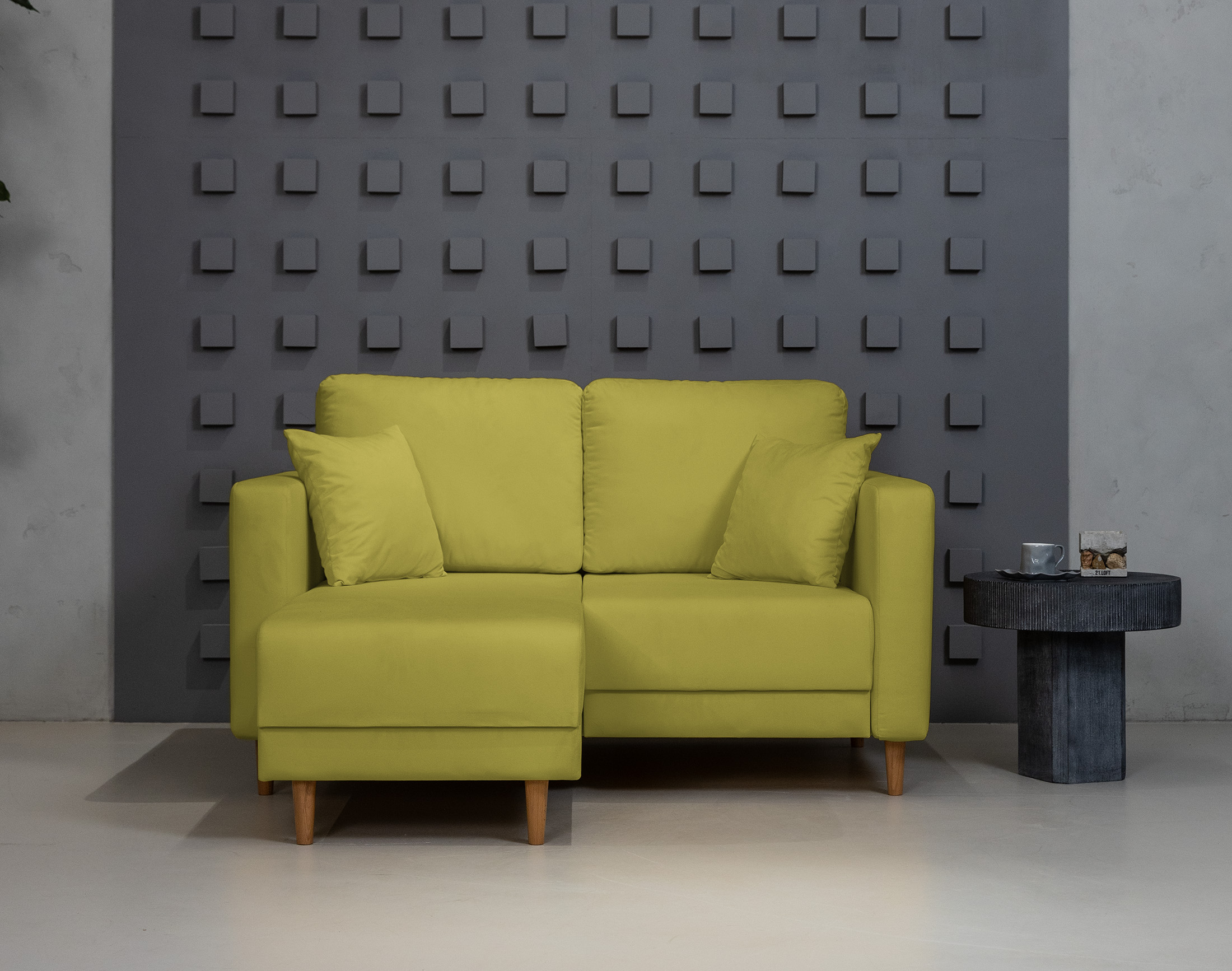 Маленький угловой диван отлично впишется в небольшие помещения, не занимая слишком много места.