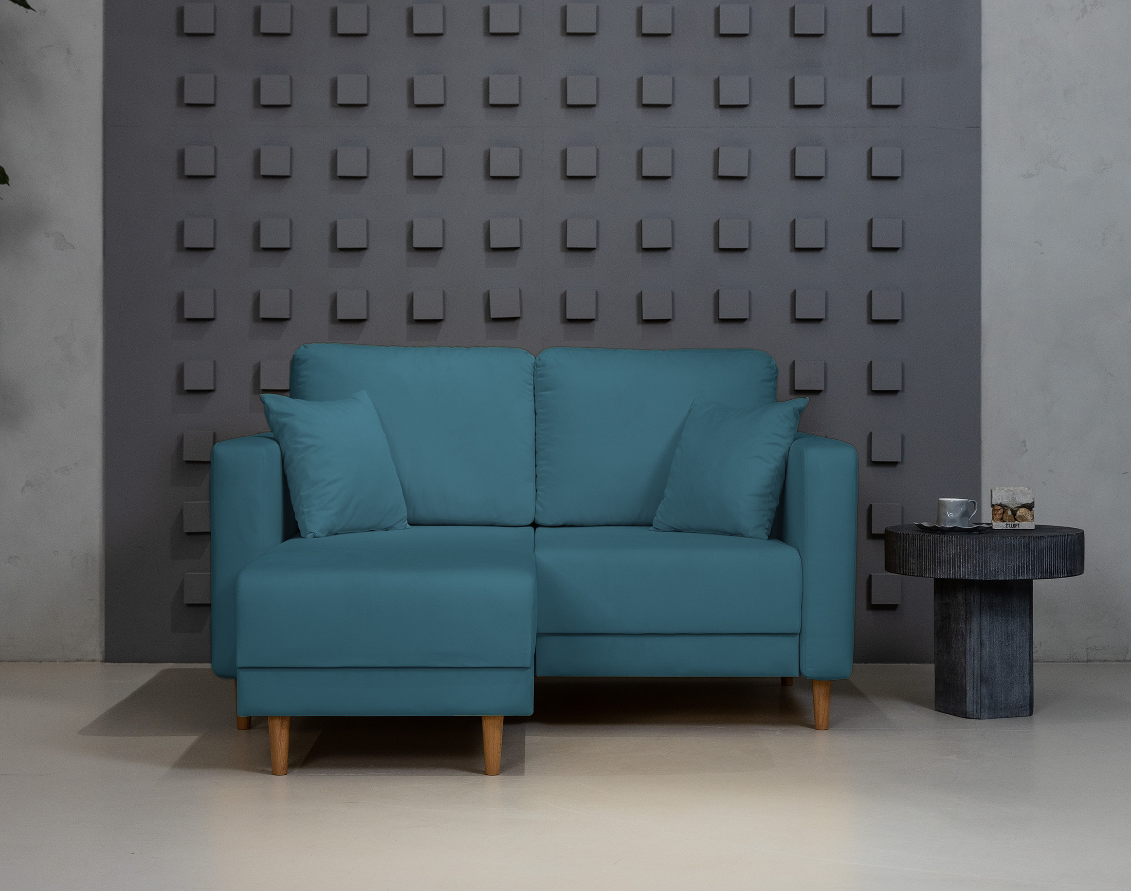 Маленький угловой диван отлично впишется в небольшие помещения, не занимая слишком много места.