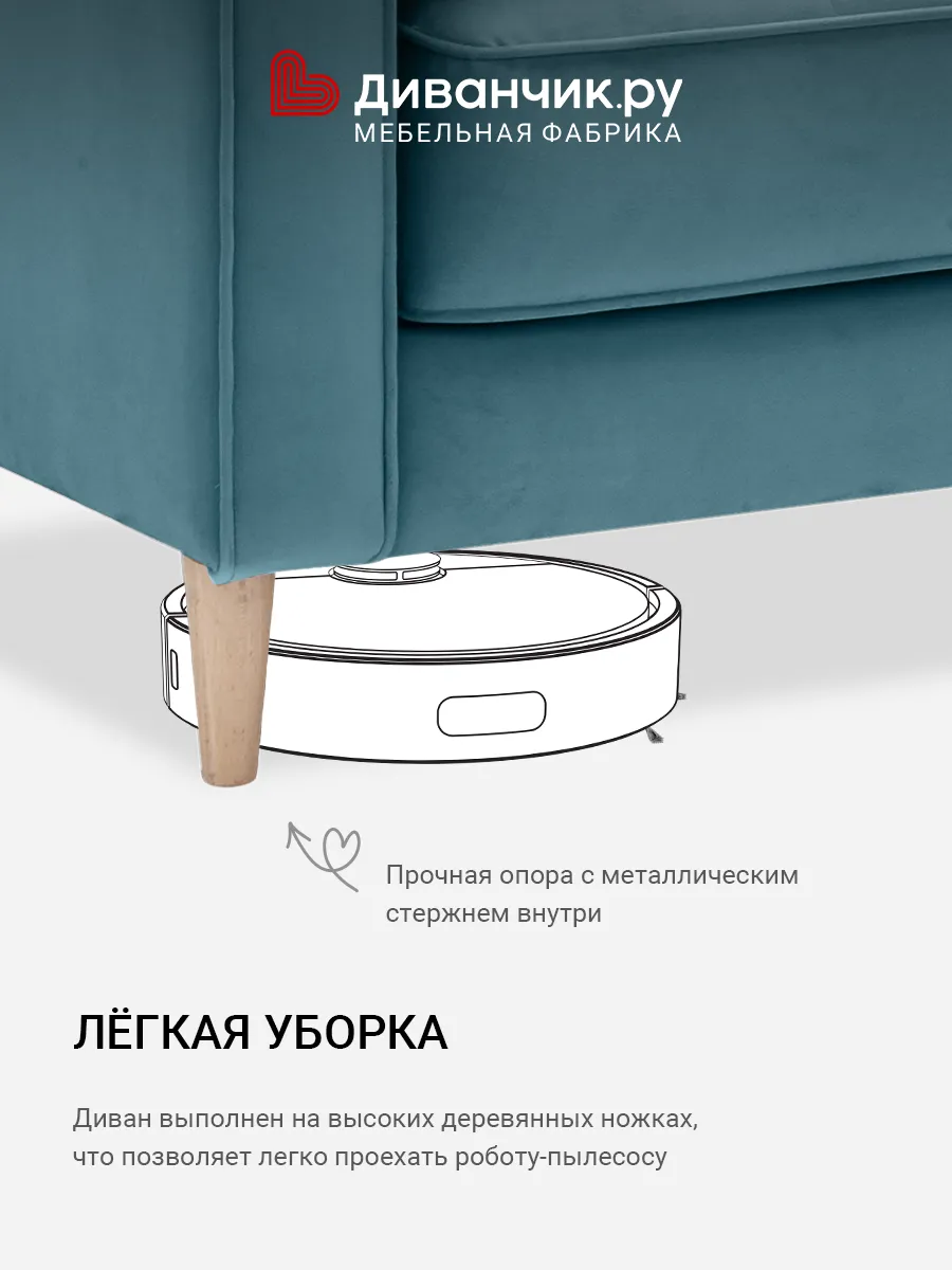Продуманная конструкция усилена березовой фанерой и брусом из хвойных пород дерева. Это повышает срок службы дивана, позволяет выдерживать большой вес и частое использование без деформаций и скрипа. Поэтому мы даем рекордную на рынке гарантию — 5 лет!