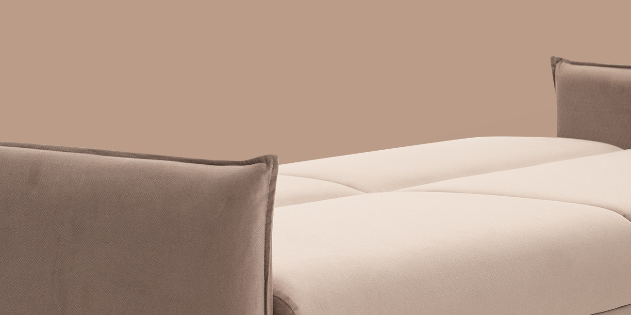 В собранном виде занимает очень маленькую площадь, в разложенном — образует просторное и удобное спальное место. А узкие подлокотники не увеличивают габариты дивана.