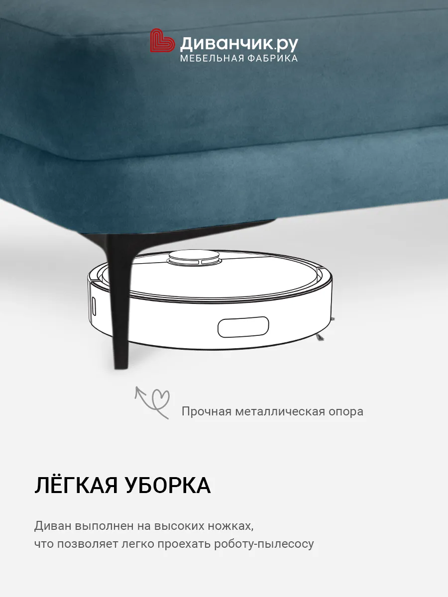 Диван Олесунн мини Лазурный велюр Triniti с грязеотталкивающей технологией