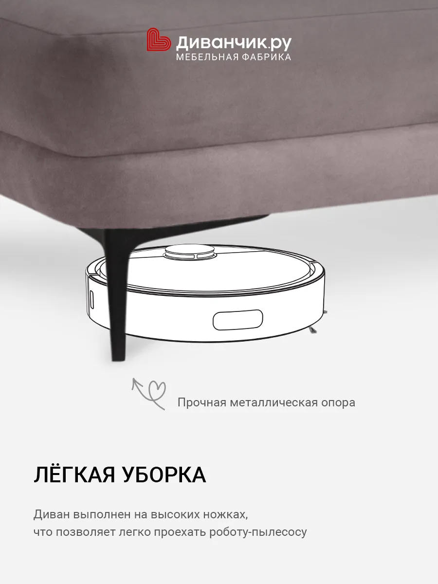 Надежный и удобный «шагающий» механизм. Потянув сиденье, механизм сам поднимает его вверх и выдвигает вперед, без дополнительного контакта с полом. Далее диван раскладывается по принципу «еврокнижки». В результате диван легко трансформируется в широкое и ровное спальное место.