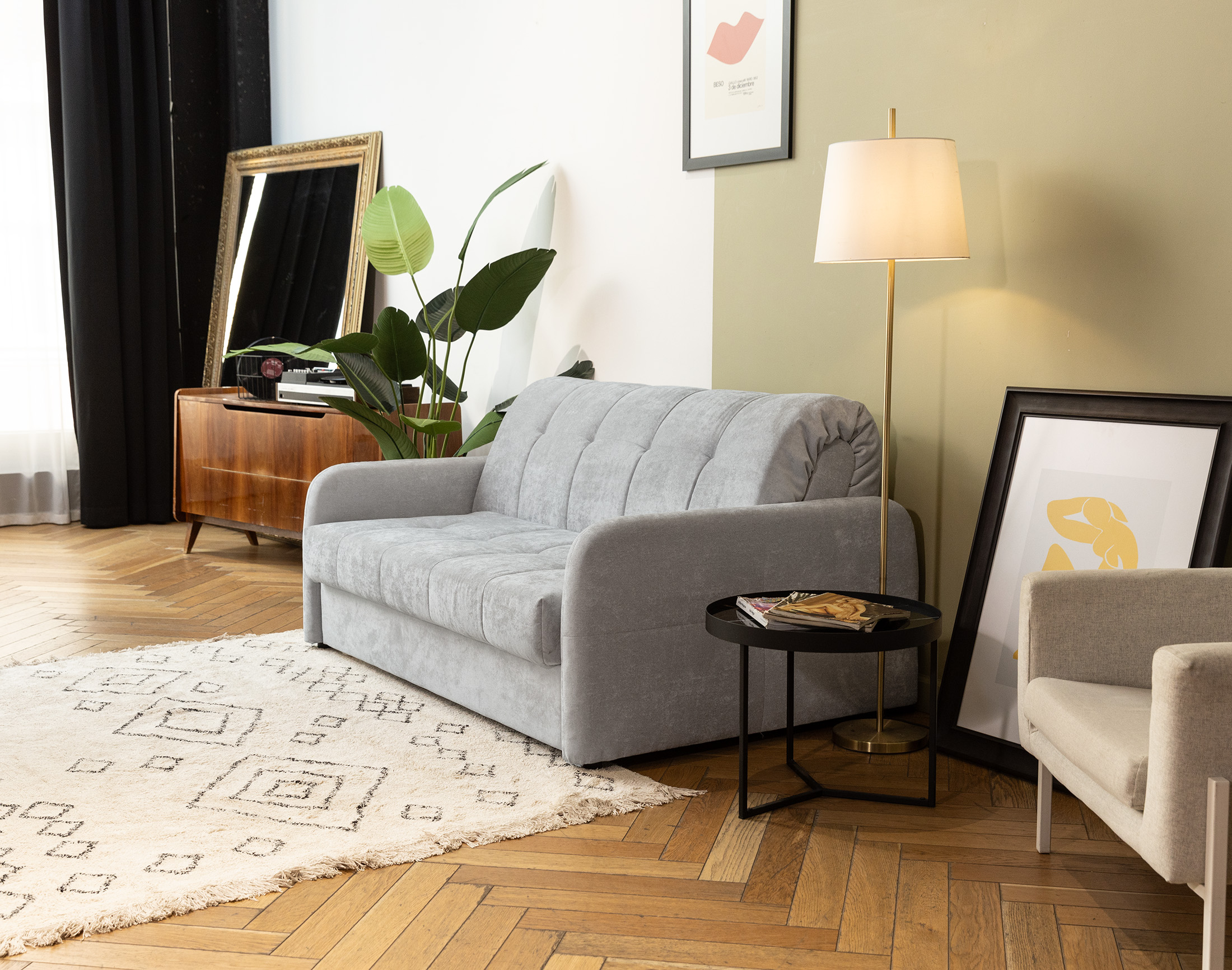Идеальный пример эргономичной мебели. Небольшой по габаритам диван легко трансформируется в полноценное спальное место для двоих.