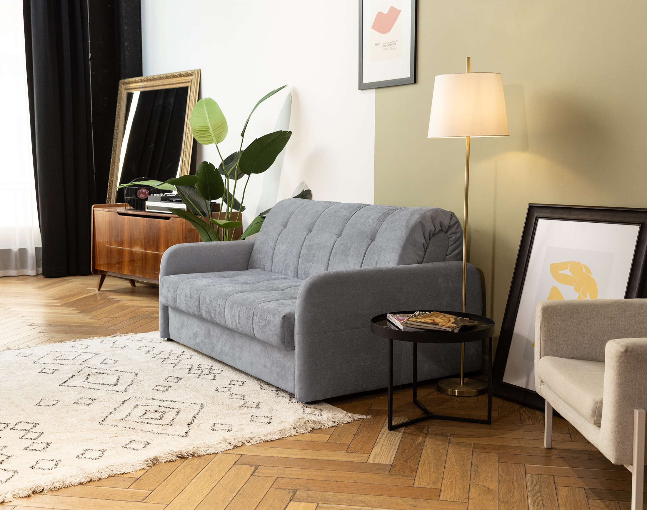 Идеальный пример эргономичной мебели. Небольшой по габаритам диван легко трансформируется в полноценное спальное место для двоих.