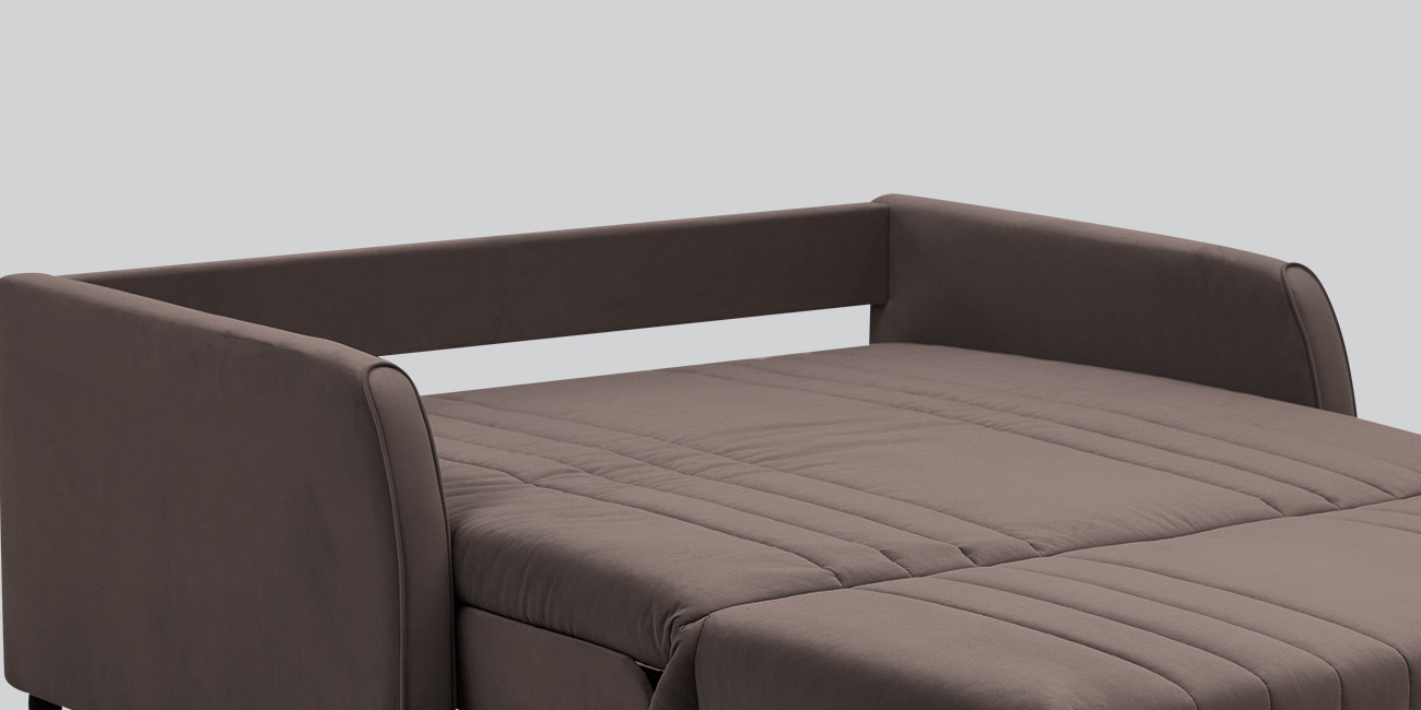 Механизм трансформации устроен по принципу мехов «аккордеона». В сложенном виде — занимает очень маленькую площадь, в растянутом — образует просторное и удобное спальное место. А узкие подлокотники не увеличивают габариты дивана.