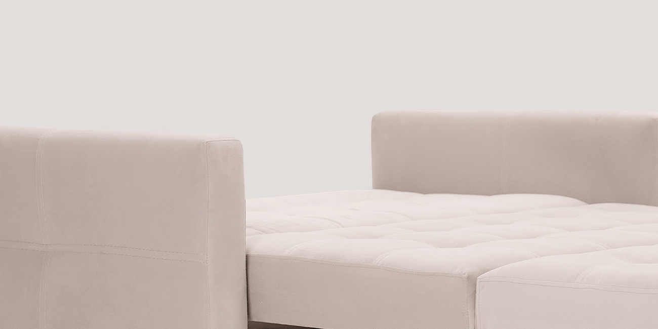 В собранном виде занимает очень маленькую площадь, в разложенном — образует просторное и удобное спальное место. А узкие подлокотники не увеличивают габариты дивана.