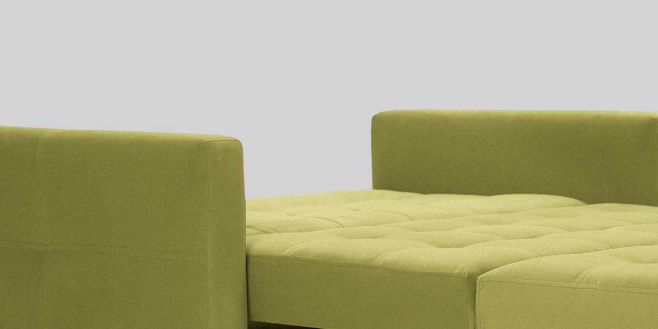 В собранном виде занимает очень маленькую площадь, в разложенном — образует просторное и удобное спальное место. А узкие подлокотники не увеличивают габариты дивана.