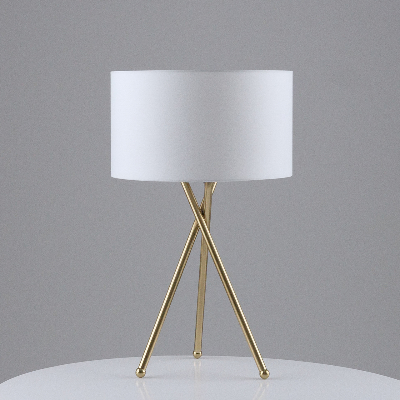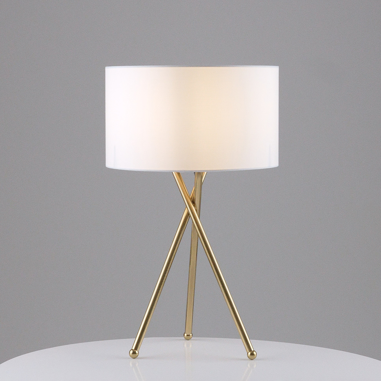 Стильная настольная лампа Palma. Тканевый абажур белого цвета мягко рассеивает свет и создает приглушенное комфортное освещение. В качестве источника света подойдут лампы с цоколем Е27. Металлический каркас латунного цвета оригинальной формы и с устойчивой конструкцией дополняет дизайн лампы. Отличный вариант для украшения интерьера и создания дополнительного освещения в спальне или в зале.