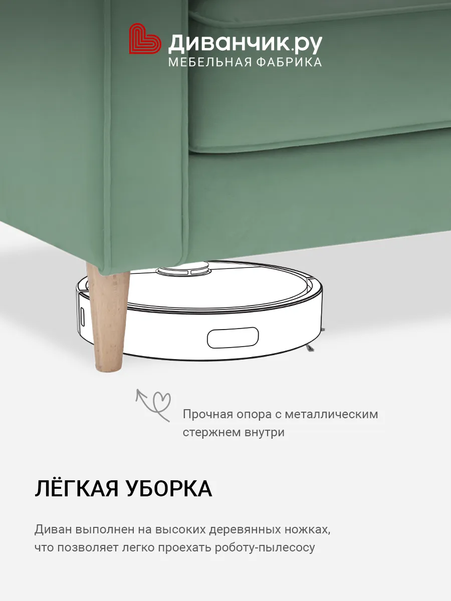 Диван Раума Мятный велюр Triniti с грязеотталкивающей технологией