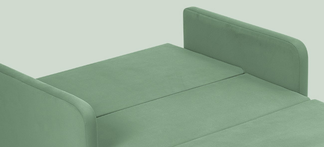 Диван легко раскладывается в полноценное спальное место, позволяющее располагаться головой к стене.