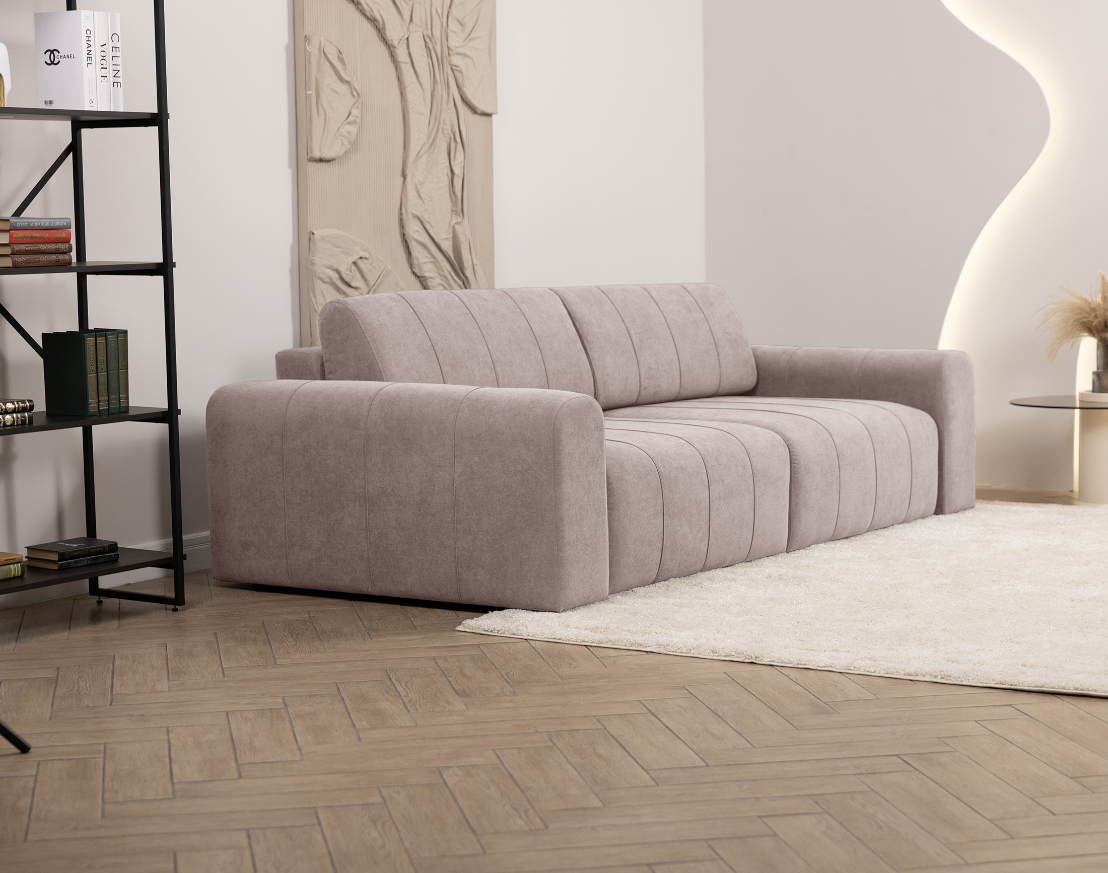 Диван идеально вписывается в современные интерьеры, где ценят минимализм, натуральные формы и сдержанные акценты. Модель легко трансформируется в просторное спальное место, сочетая эстетику, уют и практичность — как тонкий диалог с природой и искусством, которыми знаменита Седона.