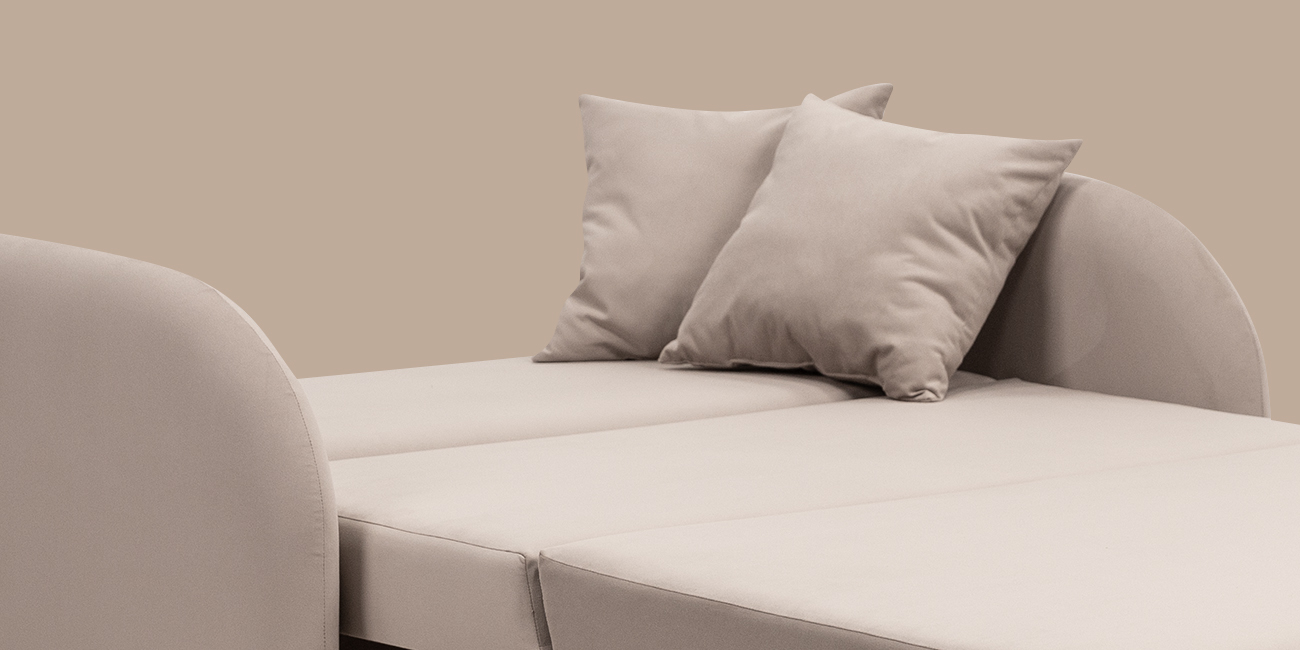 В собранном виде занимает очень маленькую площадь, в разложенном — образует просторное и удобное спальное место. А узкие подлокотники не увеличивают габариты дивана.