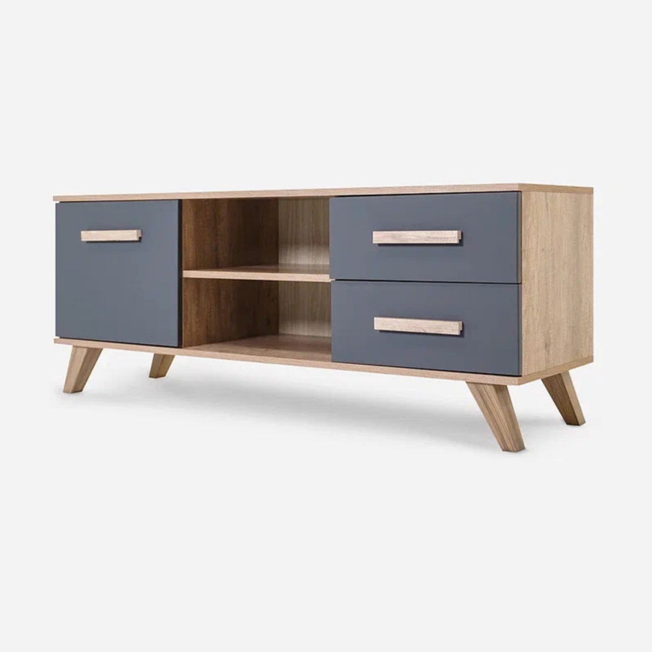 ТВ-тумба Вега Скандинавия — это сочетание стиля и практичности. Модель оснащена двумя ящиками полного выдвижения, а также отделением за распашной дверкой. В открытых нишах можно разместить игровую приставку и другие необходимые вещи. Высокие ножки не перегружают обстановку и позволяют удобно проводить уборку. Петли с доводчиком обеспечат плавное и бесшумное закрывание дверки.