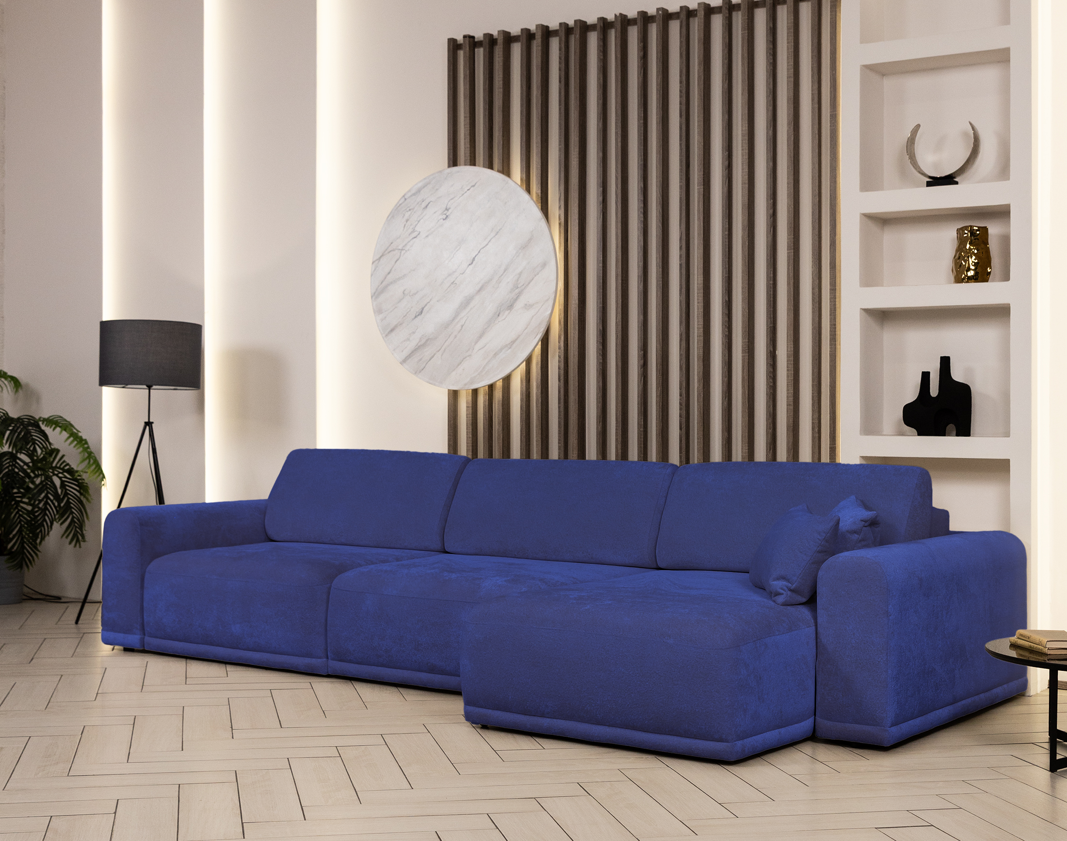 Невероятно мягкий, бархатистый микровелюр обеспечивает высокий уровень тактильного комфорта и придаёт мебели премиальный, уютный характер.
