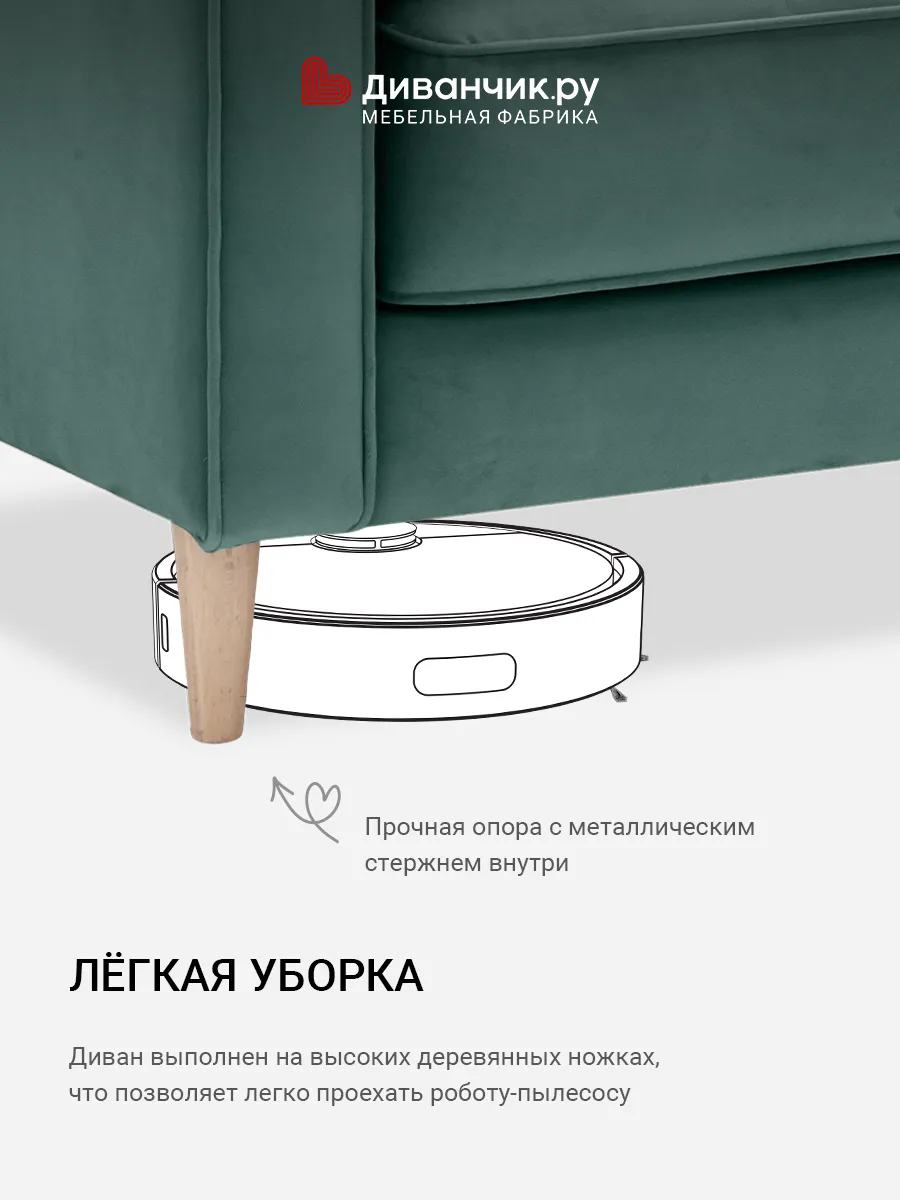 Стальной механизм и уникальная кинематика делает процесс трансформации необыкновенно легким и надежным. Потянув за сиденье, вы запускаете механизм, который поднимает сиденье вверх и выдвигает его вперед без дополнительного контакта с полом. Далее диван раскладывается по принципу «еврокнижки». В результате диван легко трансформируется в широкое и ровное спальное место.