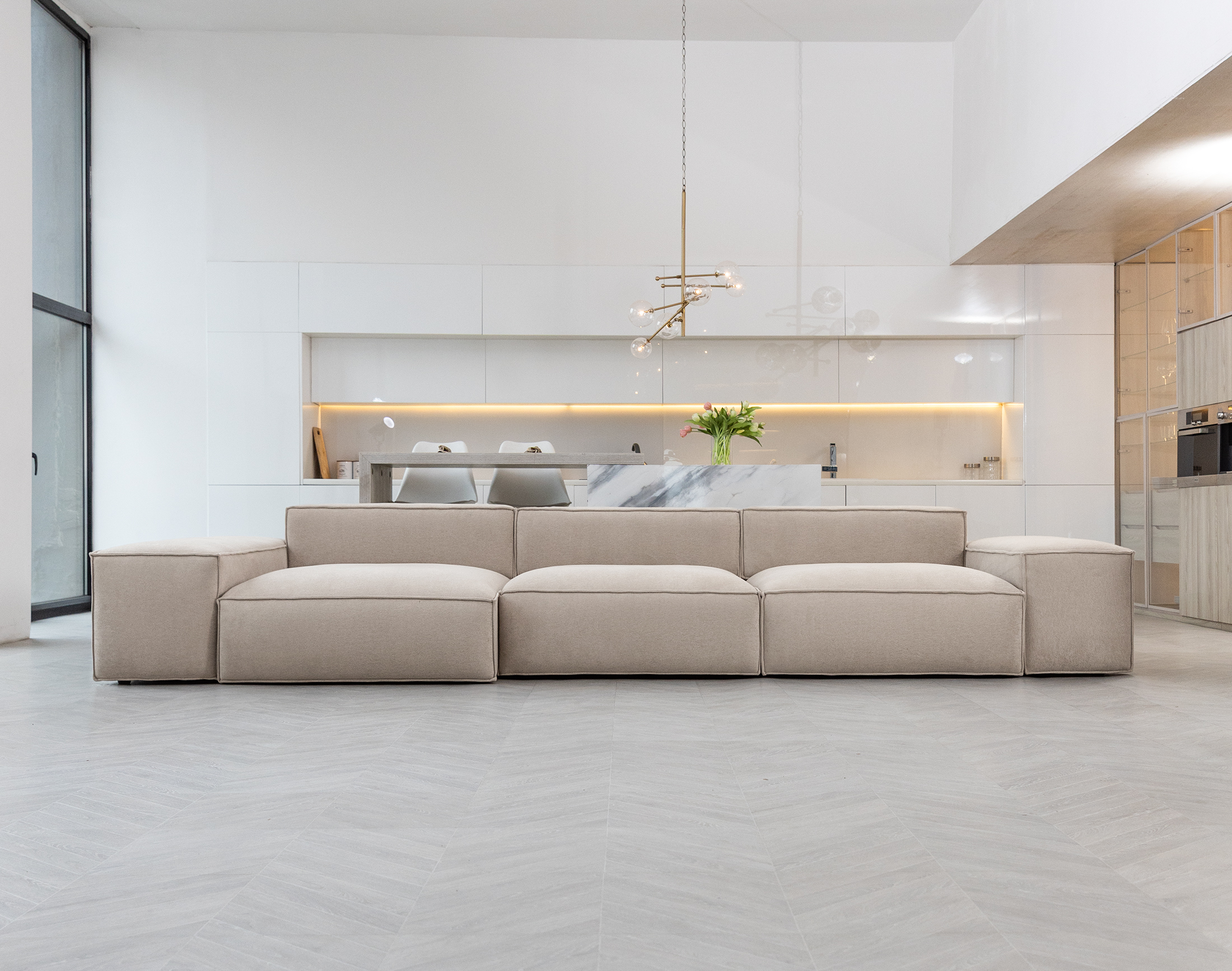 Современный минималистичный силуэт подчёркивает элегантность интерьера и делает диван стильным акцентом любого пространства.