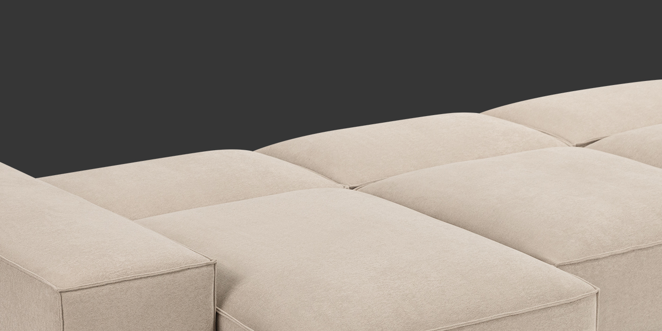 Модульная конструкция и раскладывающиеся секции позволяют легко изменять конфигурацию дивана под пространство и настроение, а также превращают его в полноценное спальное место.