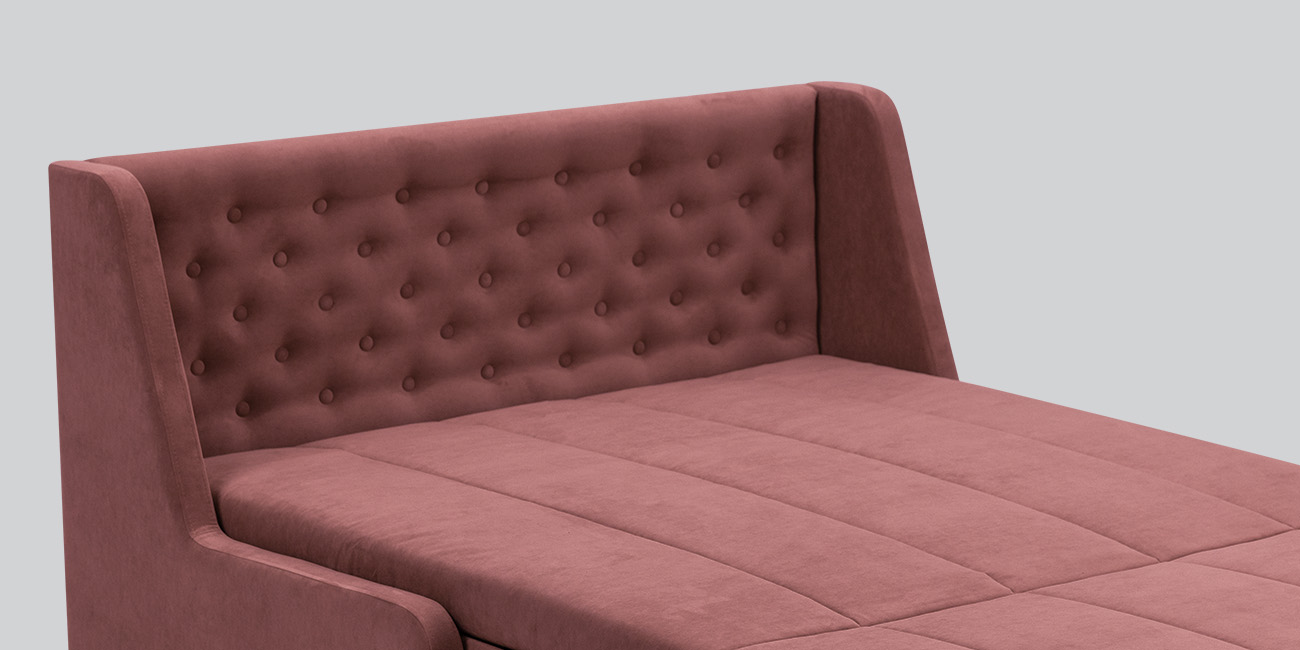 Элегантное изголовье с каретной стяжкой придаёт дивану утончённый вид, превращая его в стильную кровать. Это изысканное оформление не только добавляет шарма, но и гармонично вписывается в интерьер.